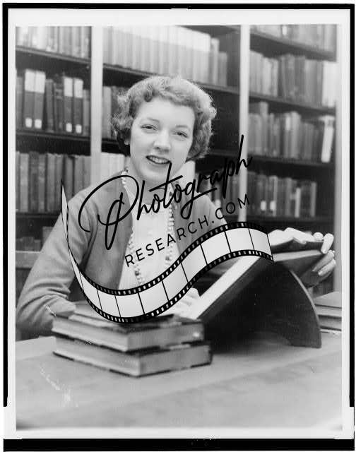 Figure skater Tenley Albright studying in library at Radcliffe College,1955