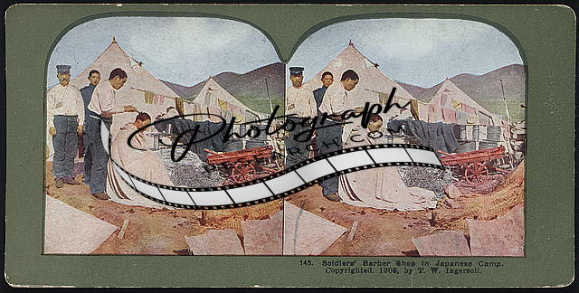 Photo of Stereograph,Soldier's Barber Shop,Japanese Camp,China,Manchuria,1905