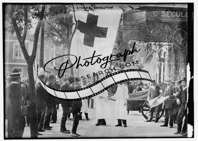 Lisbon,Portugal - Revolution,people,flag with cross,street scene,buildings