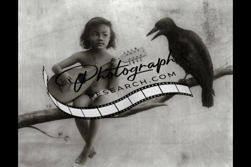 Little Nude Black Girl,Mandolin,On Tree Limb,Crow,c1895