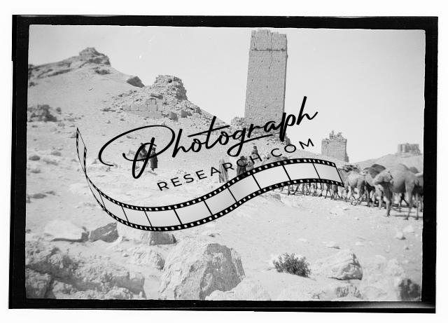 Camels in front of tower tombs,Palmyra?,Tadmur,Syria,Middle East,Matson Photo