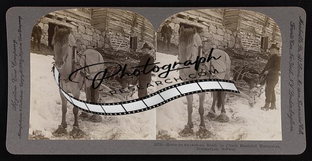 Horse on snowshoes ready to climb Haukelid mountains, Telemarken, Norway