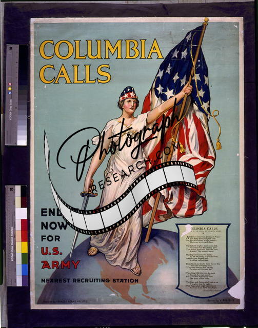 World War I,WWI,Columbia Calls,Enlist now for the United States Army,c1916