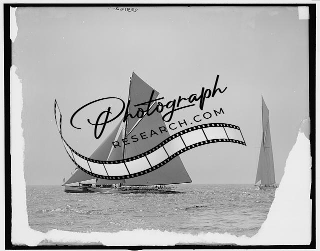 Following yachts,outer mark,steam,America's Cup races,regattas,boats,ships,1903