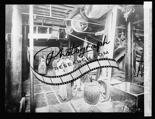 Where sacks are opened,the sugar starts on its journey of refinement,1915