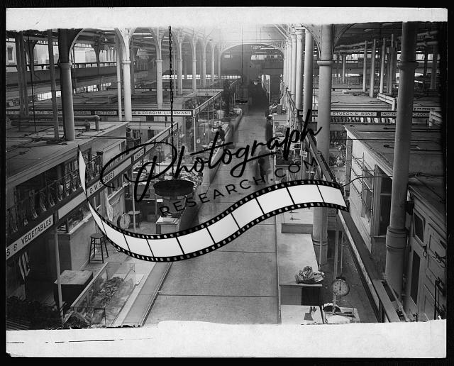 Interior of Washington Market showing some of the retail stalls,1917,New York,NY