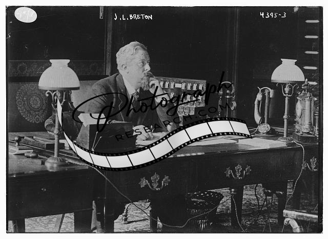 J.L. Breton,desk,lamps,telephone,Bain News Service