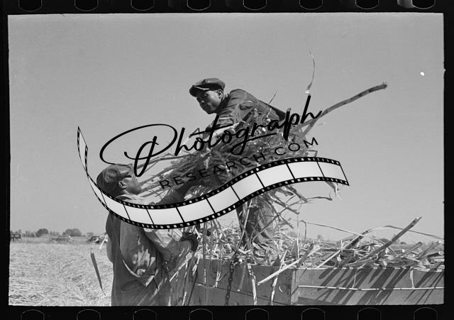 Loading sugarcane onto wagon in field,near New Iberia,Louisiana,LA,FSA,1938,1