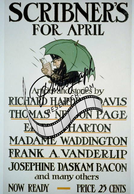 PHOTO ONLY of Scribner's for April,Umbrella,Raining,Man reading magazine,1900