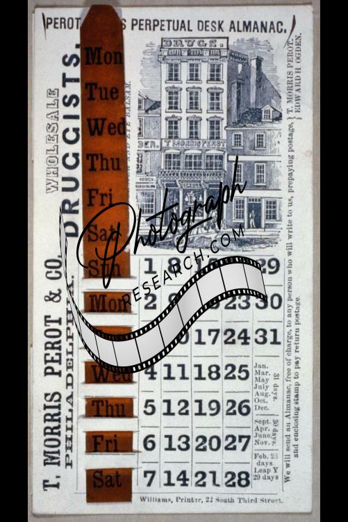 Perot & Co's perpetual desk almanac,Advertisement,T. Morris Perot & Co.,druggist