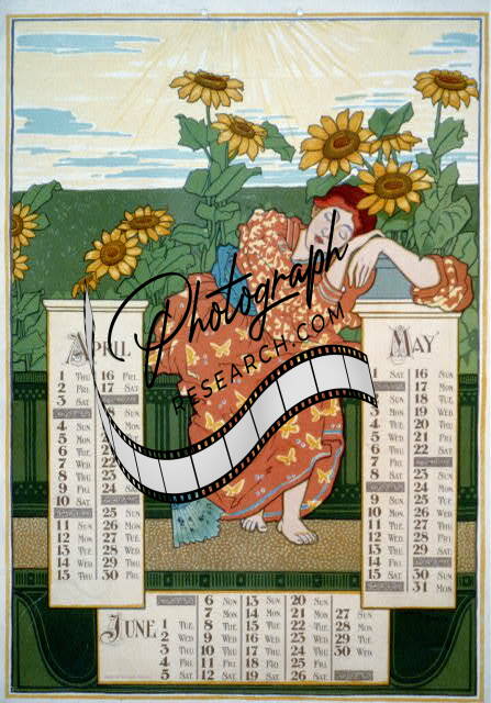 PHOTO ONLY of Poster calendar for 1897. April,May,June,Sunflowers,Woman