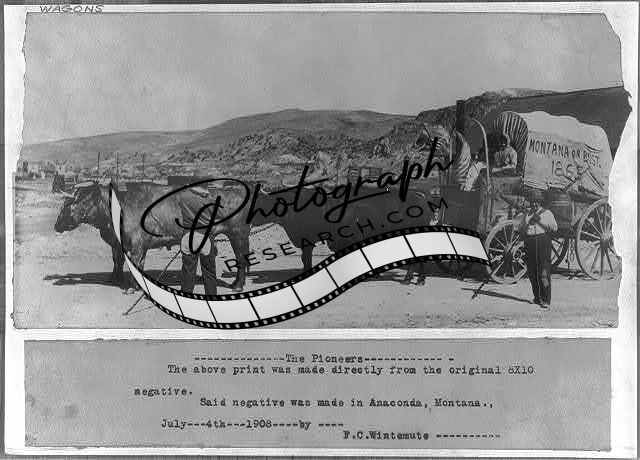 The Pioneers,Covered Wagon drawn by oxen,US Flags,1908