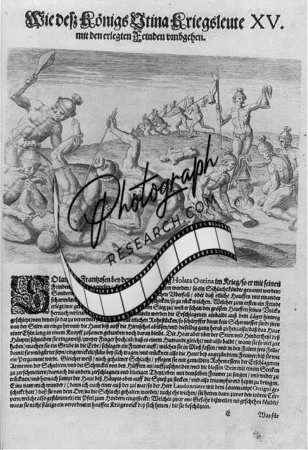 Cannibal Indians dismembering and cooking captive,1591