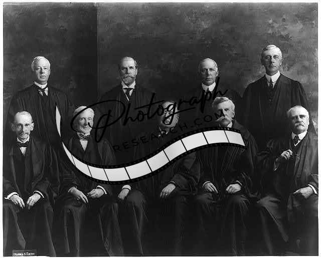 U.S. Supreme Court in 1912,Men posed in judicial robes,one is smiling