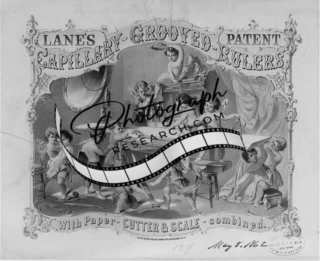 Lanes' patent capillary grooved rulers. With paper-cutter & scale,May c1862
