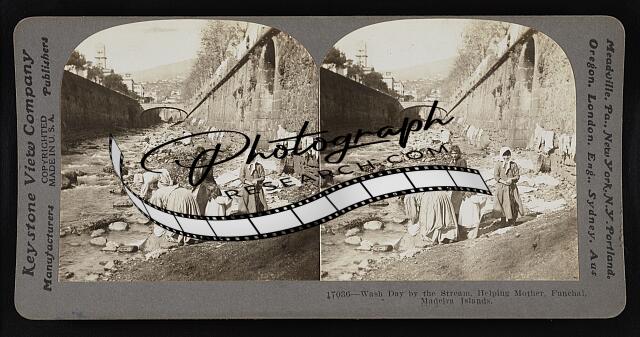Wash day by the stream, helping mother, Funchal, Madeira Islands
