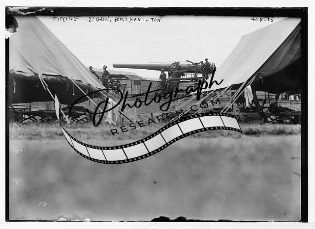 Fort Hamilton,loading 12' gun,June 1908,men loading gun