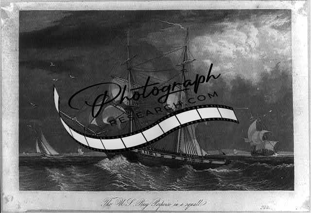 US Brig,PORPISE,in squal,ships sailing,waves,clouds