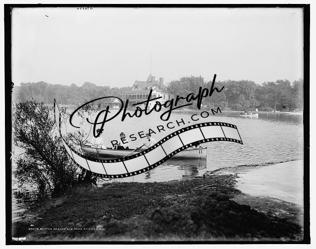 Boating,Garfield Park,canoes,boats,buildings,outdoors,Chicago,Illinois,IL,c1907