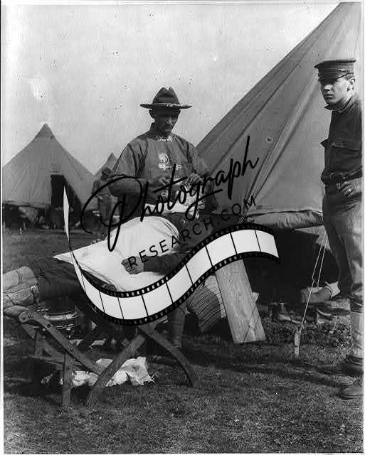 Fort Sam,Houstan,Texas,TX,c1911,field barber giving a shave,3 men in uniform