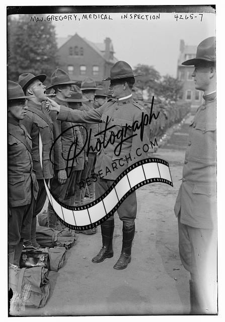 Major Gregory,Medical Ispection,Military,man with mouth open,Bain News Service