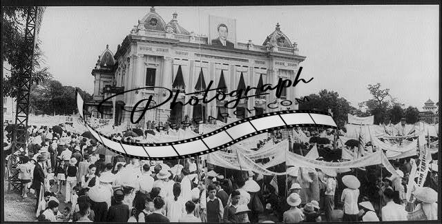Large Crowd with banners outside Presidential Palace,Saigon,1950,people