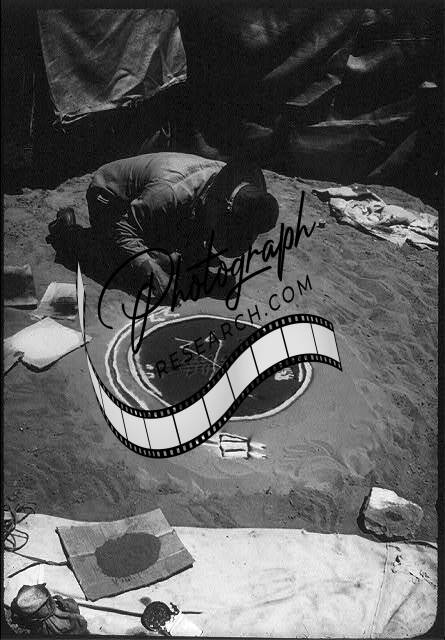 Navajo Medicine man preparing colored sands,treatment of a sick child,1951
