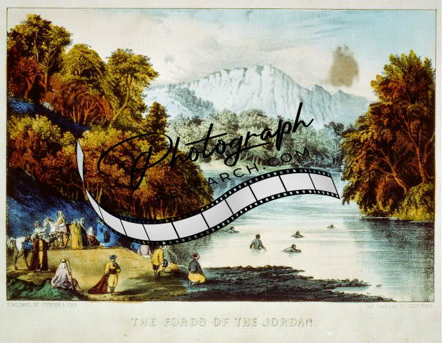 The Fords of the Jordan,1856-1907,Currier & Ives,Photograph,people,river,mtns