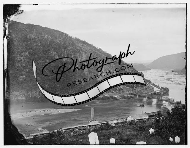 View,cemetery,water bodies,bridges,rivers,Harper's Ferry,West Virginia,WV,1862