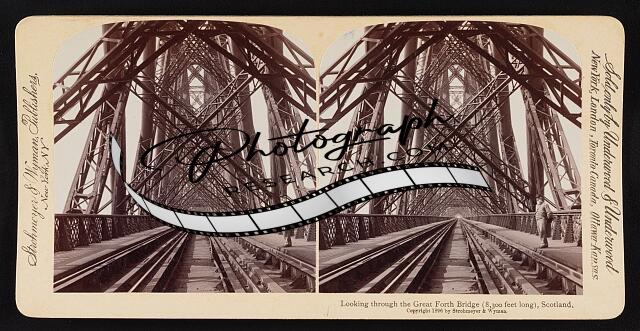 Looking through the great Forth Bridge (8,300 feet long), Scotland