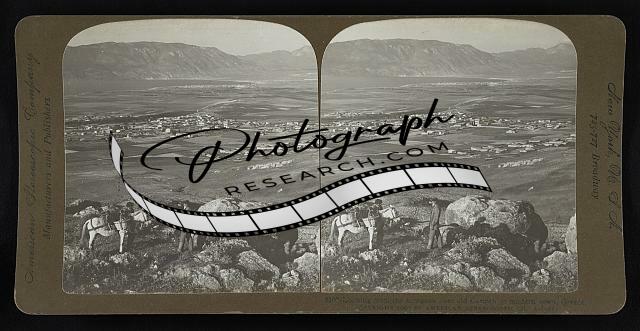 Looking from the Acropolis over old Corinth to modern town,Greece