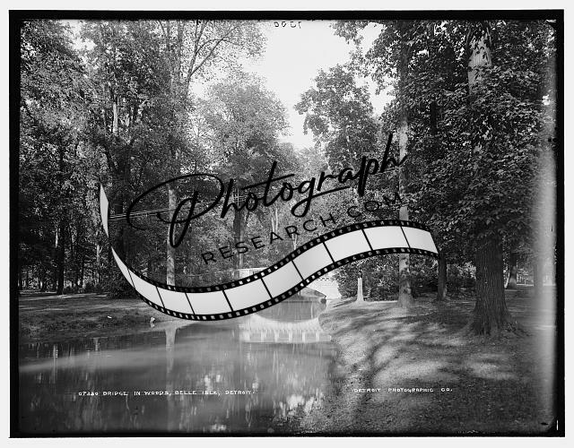 Bridge,woods,water bodies,lakes,paths,trails,Belle Isle,Detroit,Michigan,MI,1880