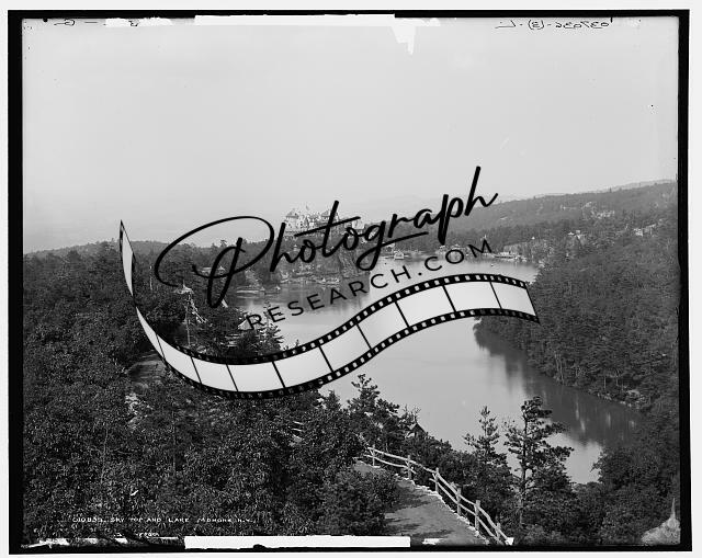 Sky Top,cliffs,water bodies,buildings,fences,trees,Lake Mohonk,New York,NY,1900