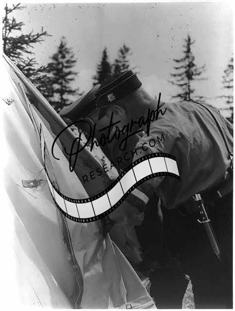 Two members of the Hitler Jugend looking into tent. Hitler Jugend knife foregrd.