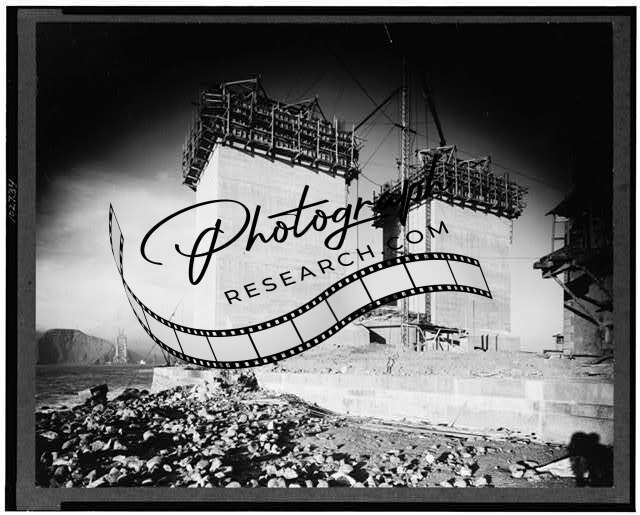Pylon,south shore,Golden Gate Bridge project,construction,California,CA,c1934