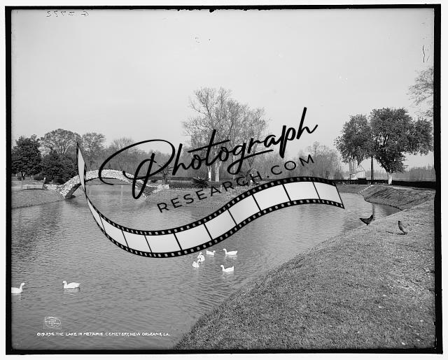 Lake,Metairie Cemetery,burial ground,ducks,bridge,New Orleans,Louisiana,LA,c1906