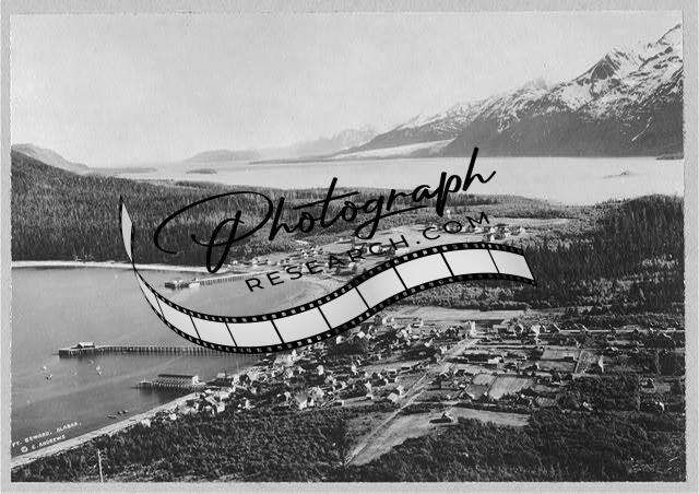Aerial View of Haines from Fort Seward,Alaska,AK,Waterfronts,Mountains,c1915