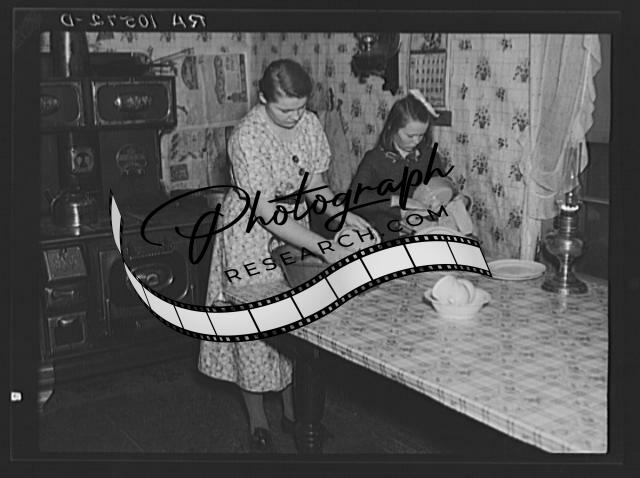 Title: 7:45 a.m. Tip Estes' children watch their mother make a pie. Near Fowler, Indiana