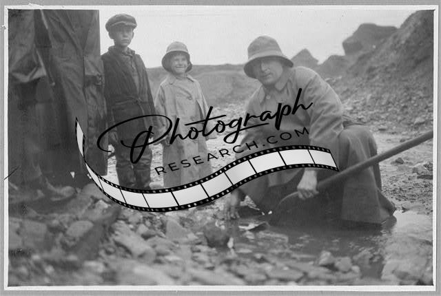 Mr. Lindeberg panning gold at Pioneer Mine with a shovel,Nome,Alaska,AK,c1908