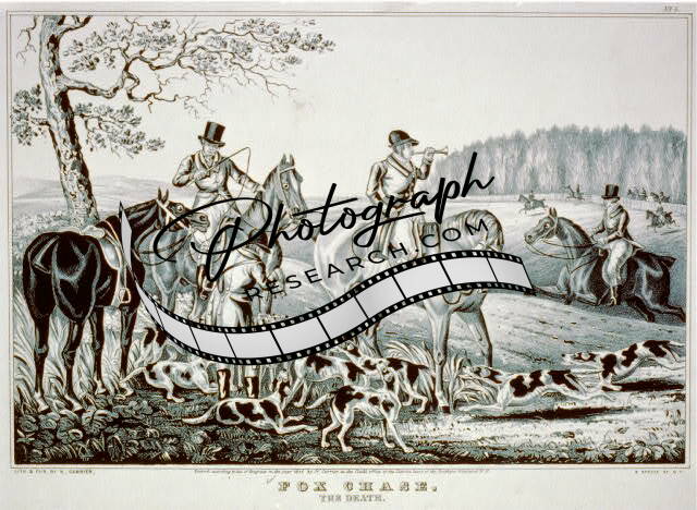 Fox chase: The death,c1846,Currier & Ives,Photo,men,horseback,dead fox,dogs