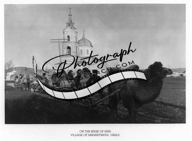 Edge of Asia,village,camel,cart,Magnetnaya,Urals,Magnitogorsk Region,Russia,1930