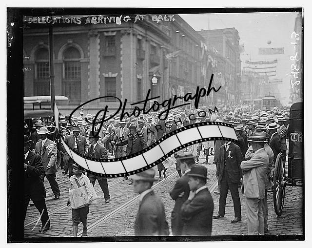 Delegations arriving in Baltimore,Maryland,MD,1910-1915,crowded street,Bain News