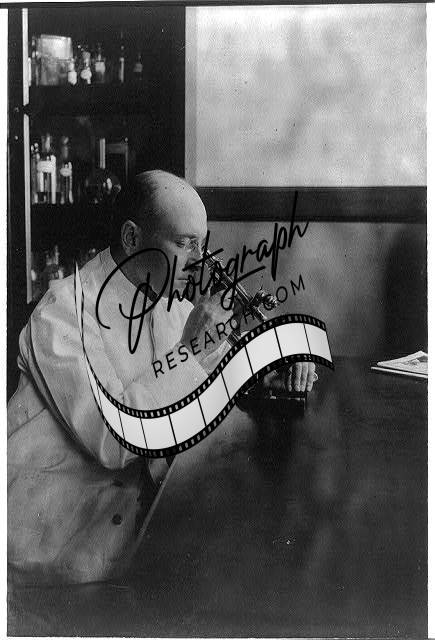 [[Jean Henri Fabre, 1823-1915, full-length portrait, seated at table examining sp