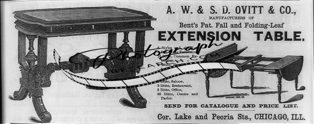 Advertisement,A.W. & S.D. Ovitt & Co,Bent's pat. fall & folding leaf table,1881