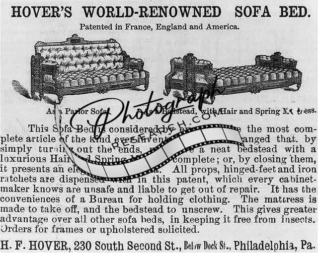Advertisement,Hover's world-renowned sofa bed,parlor sofa,1881,bedstead