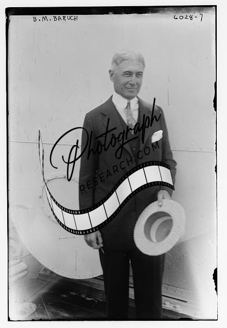 B.M.Baruch,men,suit,dress clothes,tie,hat,deck,ship passengers,Bain News Service
