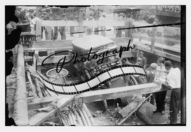 Taxi in subway on 7th Avenue,September 7,1915,Auto in Subway Excavation,wreck