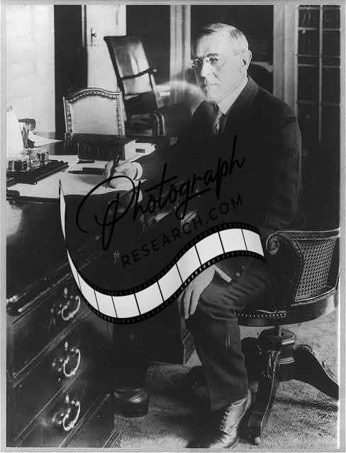Thomas Woodrow Wilson,1856-1924,full,writing at his desk,President of U.S.