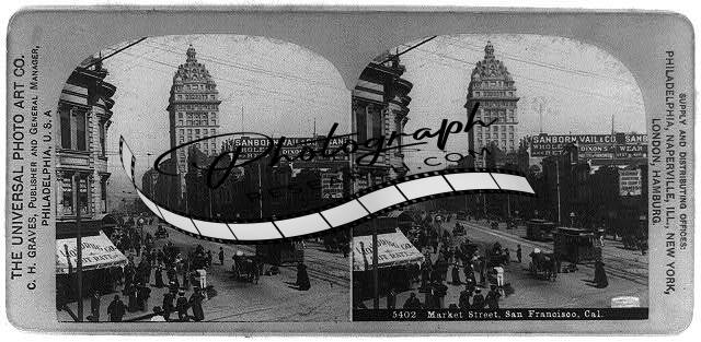 Photo of Stereograph,Market Street,San Francisco,California,CA,c1900,Railroad