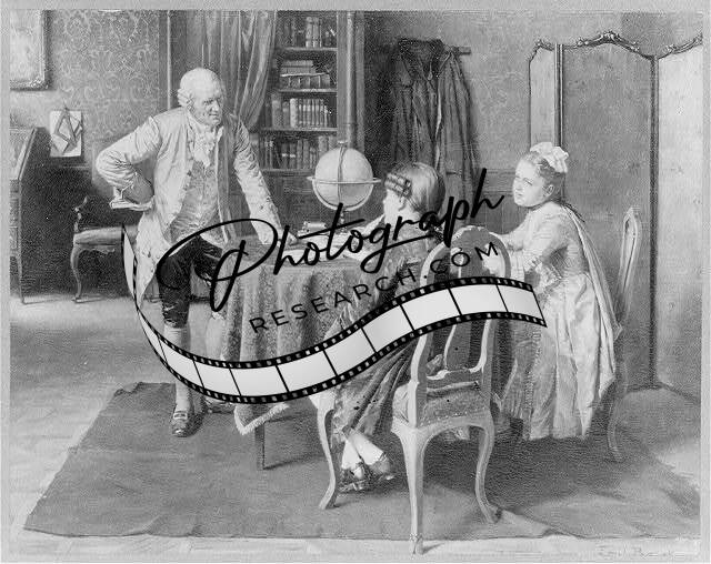 A Difficult Solution,Children with tutor,18th century interior,globe,Emil Brack